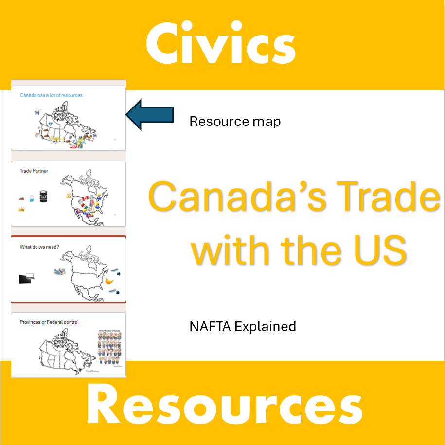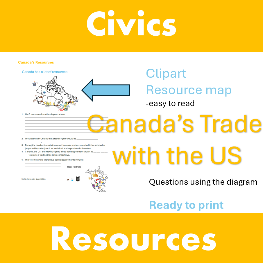 This resource helps students understand Canada’s resources to make connections with the news. The Canadian map with clipart examples of prominent items geographically placed will be a great visual aid. There is also a worksheet that students can fill out to help check for comprehension of the lesson.