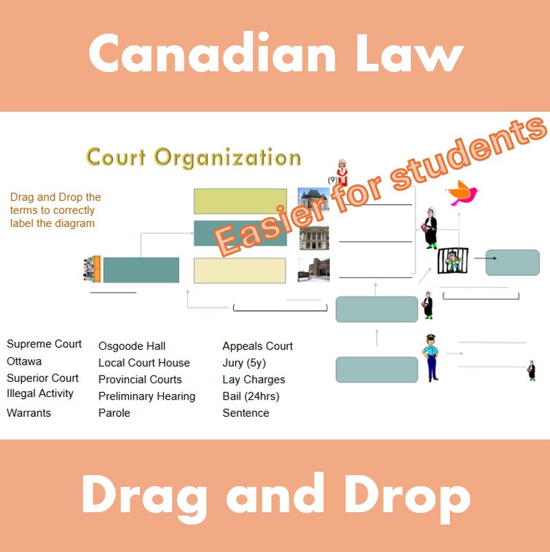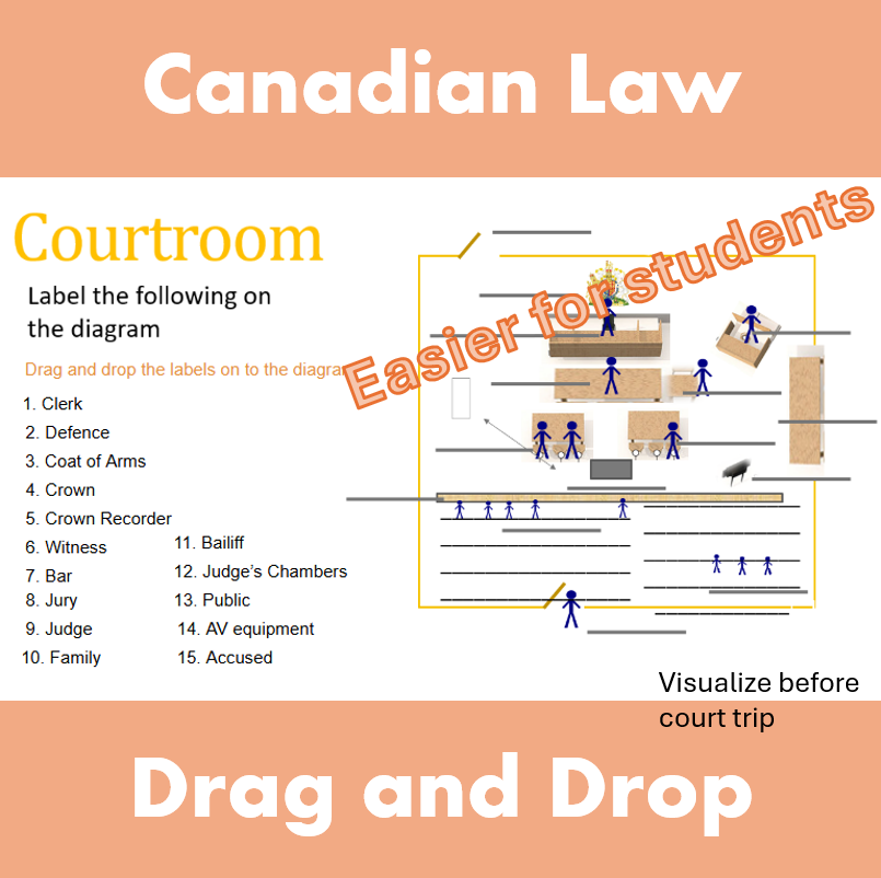 Here are two resources for the courtroom set up as drag and drop to help students apply their learning of the courtroom set up and the hierarchy of the court processes. both of these visual aids help students digest what they have learned or read in a text book to see that witnesses are placed in a position where the jury can hear or that there are options for release.