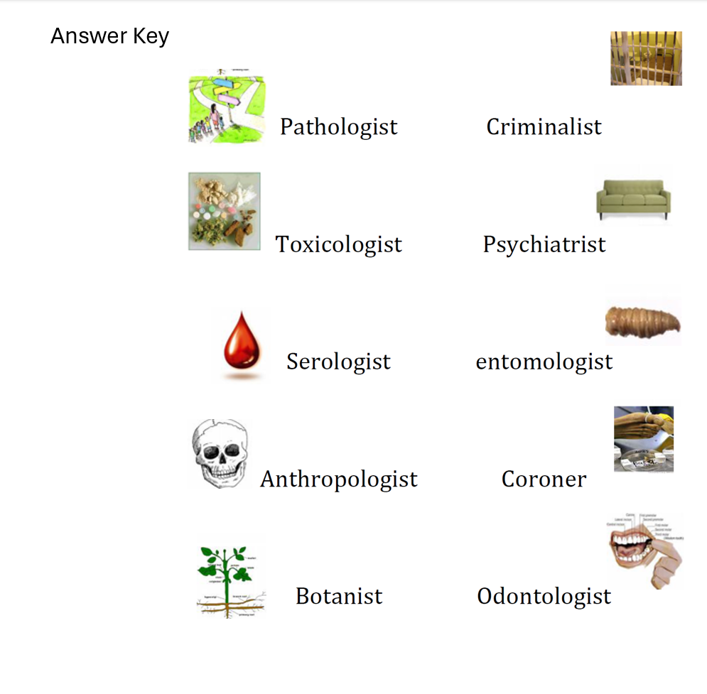 This is a fun thinking activity for forensic terminology that is great to start the unit. Match the pictures to test their understanding of the vocabulary. With process of elimination they will be able to figure it out. The students found this activity fun and helped them to remember the terms. The toe tag could be more pronounced, but I also wanted to keep this PG to ease the students into this unit.