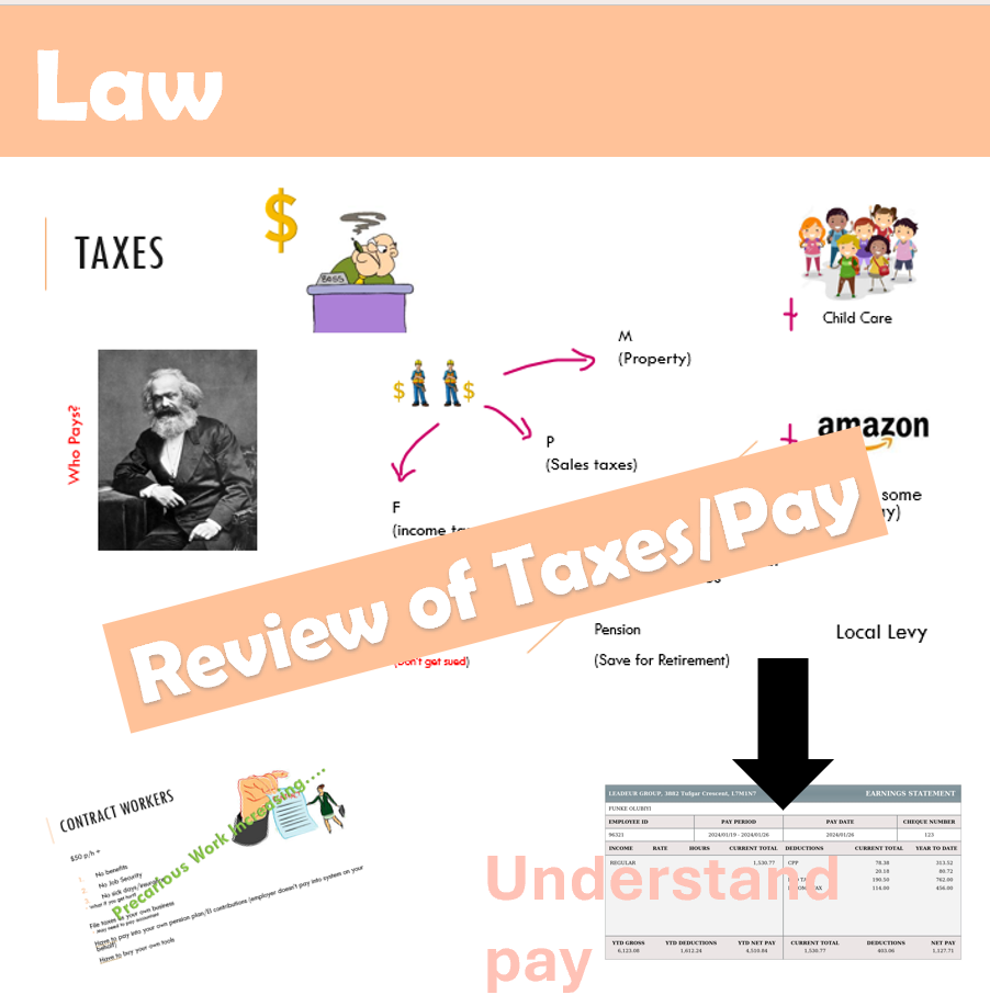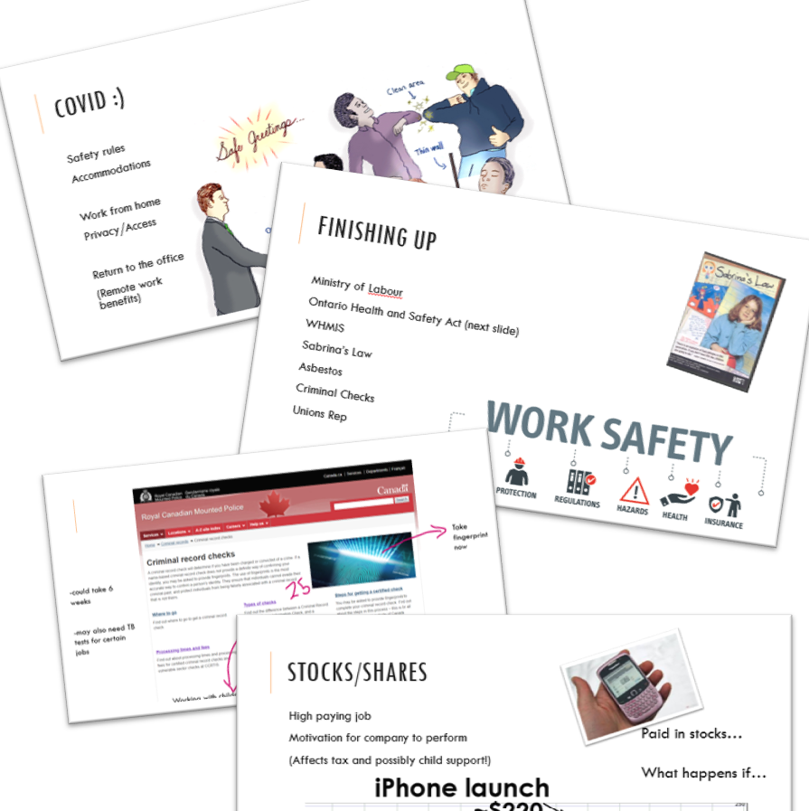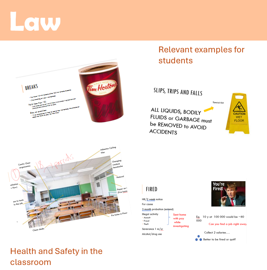 This slide show covers the entire workplace law unit to save you time. (Family law is available as a separate unit due to size.) Workplace law has 99 slides and is meant to interest students through practical examples that may impact their lives. It has lots of graphical aids (many self created) and video links to help explain concepts like the Rand formula. It also has some recent news releases and slides on current issues related to the workplace such as contract and precarious work. It even has an update on the doctor’s notes which is central to the time physicians have for patient care and the shortage of family doctors. Over the years, I have added lots of interesting details to consider in the slideshow and it is designed so that you can add cases or situations that would be helpful for you and your students each year.