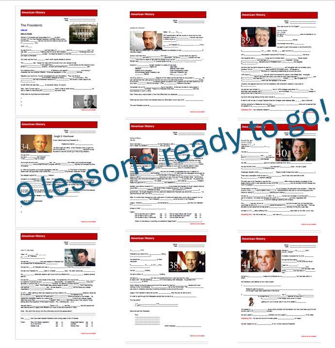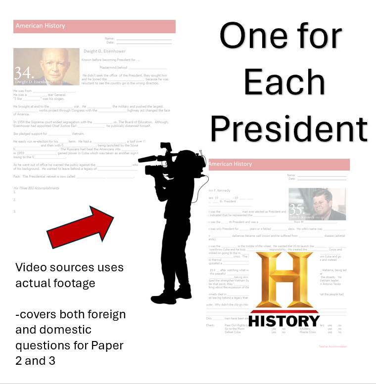 There is a worksheet for each President and this series includes key highlights for both the domestic and external achievements making this a great exam review activity to help students understand the progression. The worksheets are also great for a reference to help understand chronology and key events. I don’t like to just put on a video and this also helps with vocabulary for those who have learned English as a second language.