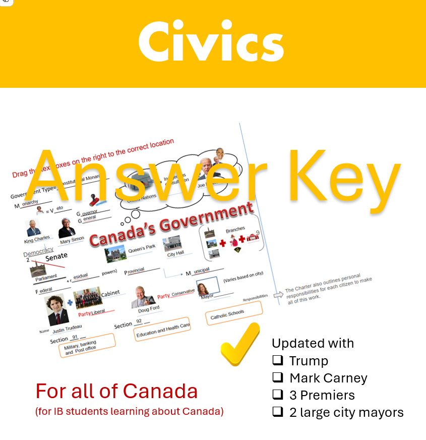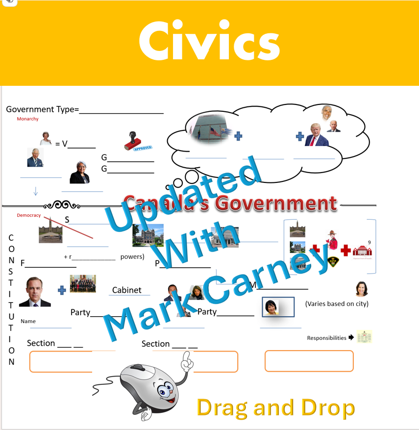 Resources Civics Materials updated with Mark Carney Ginger Major April 16, 2025 1 minute read 0 Available on Teachers Pay Teachers About The Author Ginger Major Teacher, Mom, and ability advocate. See author's posts Tags: Canada CHC2O CHV2O Civics Democracy Drag and Drop Election Federal Government Mark Carney Political Spectrum Structure Post navigation Previous: Basketball ESL lesson ResourceNext: Worst jobs in History Worksheet Leave a Reply Cancel replyYour email address will not be published. Required fields are marked *Comment * Name * Email * Website Save my name, email, and website in this browser for the next time I comment. Related Stories History WWI Bundle Ginger Major February 26, 2026 0 English ESL Phonics Visual Aids for tutoring, elementary, or life skills Ginger Major February 17, 2026 0 Resources Black history routes to Canada Reading Passage and Visual Aid Ginger Major February 3, 2026 0